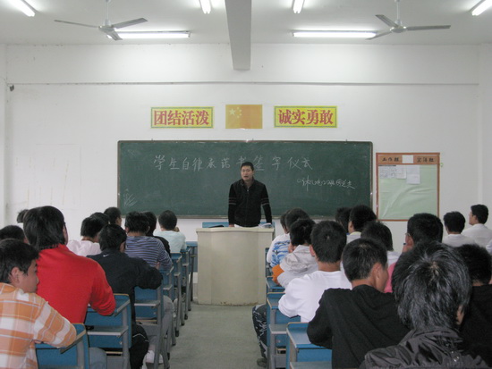 为了增强学生的责任意识和安全意识,引导学生理性思考,达到自我管理、自我教育的目的,我院在2009级新生入学教育环节特别组织开展对学生的自律教育。 9月21日下午,在各系部团总支的具体组织和辅导员的指导下,2009级新生各班开展了《学生自律承诺书》签字活动。新同学们在承诺书上签下自己的名字,郑重地做出承诺,要在今后的学习生活中严格要求自己,自律、自强,自觉遵守法律法规和学校制度,争做“勤学笃行,德技双馨”的学生。