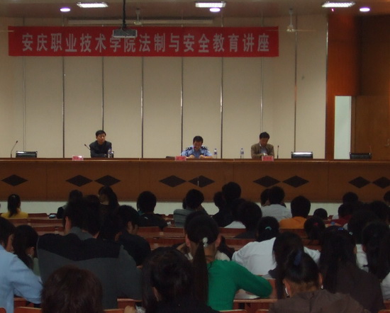 为加强对学生的法制与安全教育,建设平安和谐校园,10月9日至14日,由保卫处、学生处和各系部联合组织,我院面向2009级全体新生开展了5场法制与安全教育专题报告会。安庆市公安局老峰派出所庞继杰所长、陈敏副所长、马坤警官分别应邀主讲,各场报告会均由学生所属系部负责人主持。 |