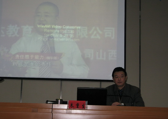 121星期二晚6:30,经济贸易系系主任、副教授朱重生老师在院图文信息中心一楼报告厅主讲了一场长约2小时关于“责任”的专题讲座。