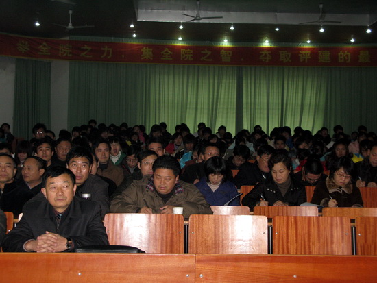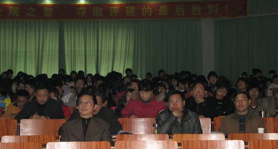学院教学督导组成员、迎评教学现场组成员、全院副科级以上管理干部、院系学生会成员、各班班长、各团支部书记等共六百余人参加了培训会。