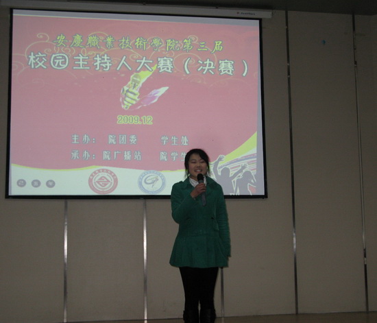 本次比赛由学院团委主办,院广播站和院学生会承办,历时两个星期。1130日前由各系部团总支、学生会组织预赛,共选拔了17名优秀选手参加了决赛阶段的比赛。