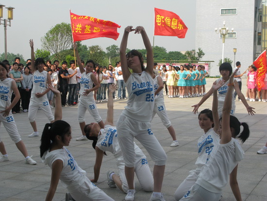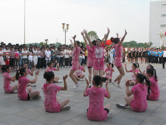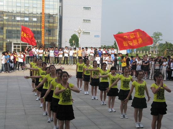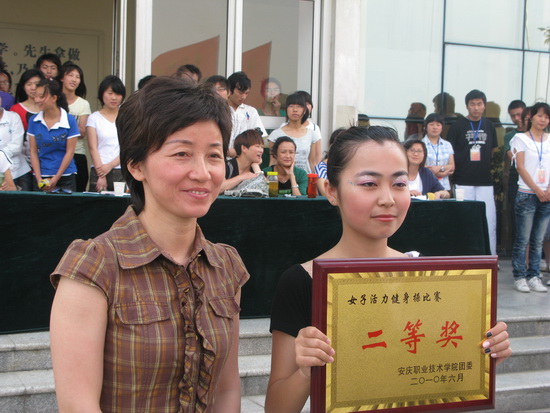 63日下午,我院女子活力健美操比赛在行政楼前广场隆重举行。院党委委员、副院长毕明生到场观看比赛并为获得一等奖的代表队颁奖,院团委书记高润霞和各系部团总支书记参加了此次比赛的开幕式并观看了比赛。许咏梅老师、王晓林老师、高萍萍老师、梅文斌老师、方玲老师、查艳老师、宋桂萍老师应邀担任此次健美操比赛的评委。比赛由院团委副书记余锋主持。