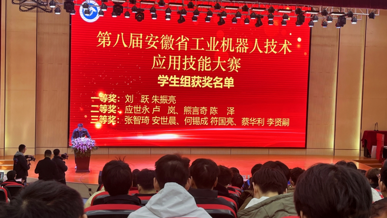 11月28日,安徽省经济和信息化厅、安徽省人力资源和社会保障厅、安徽省教育厅、安徽省总工会、共青团安徽省委员会、安徽省妇女联合会、蚌埠市人民政府联合举办的第八届安徽省工业机器人技术应用技能大赛在蚌埠市安徽电子信息职业技术学院圆满落幕。我校机电工程学院工业机器人技术专业学生应世永和卢岚组成的团队,在指导老师姚兆凤和陈祺的悉心指导下,凭借出色的专业技能和团队协作精神,荣获大赛第二名(二等奖)的优异成绩。