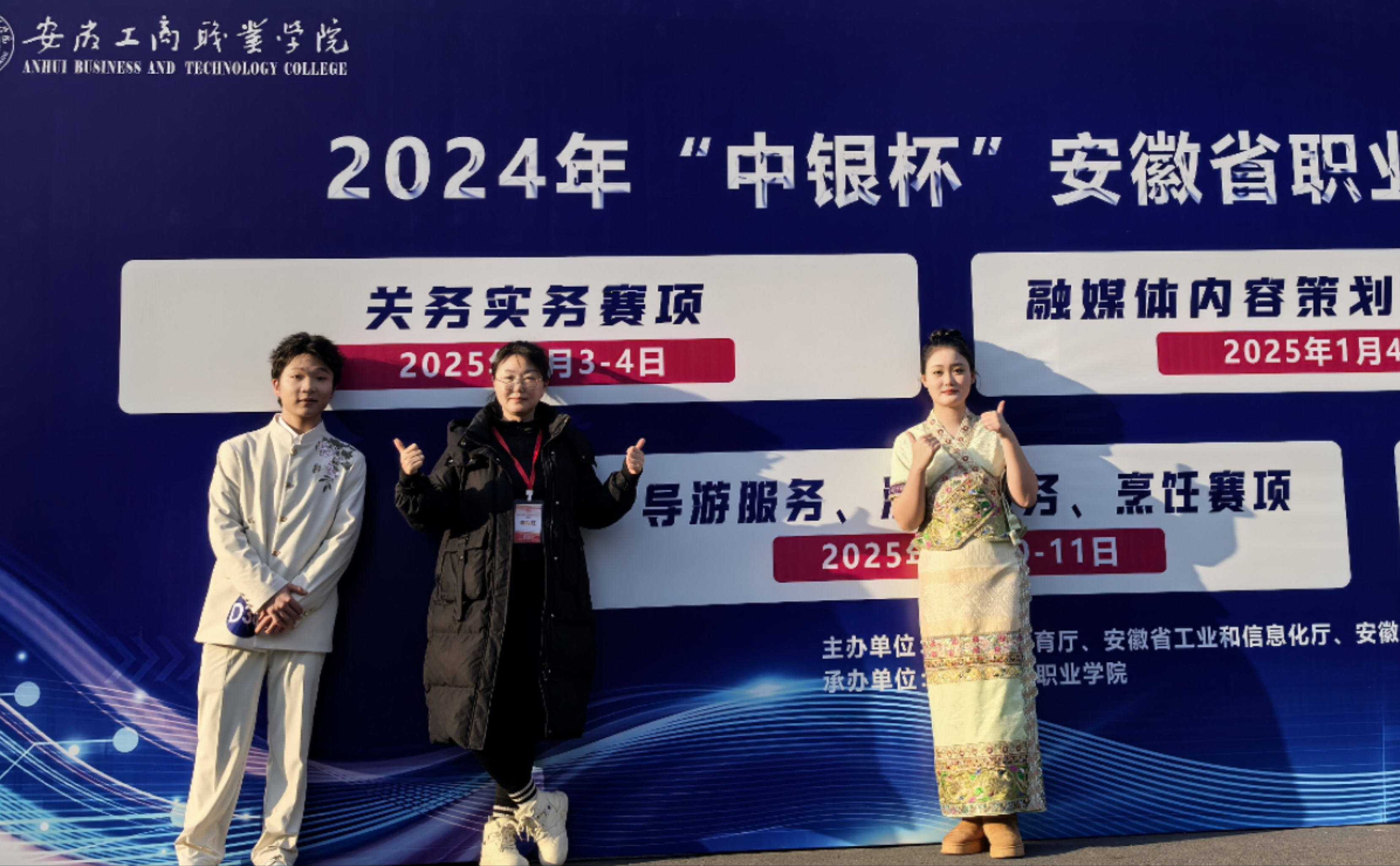 1月10日,由安徽省教育厅、安徽省人力资源和社会保障厅主办的2024年“中银杯”安徽省职业院校技能大赛(高职组)导游服务赛项在安徽工商职业技术学院启幕。我校旅游管理专业华林蔓老师指导的学生马鸣宇喜获一等奖,丁凡老师指导的学生高贞贞荣获三等奖。