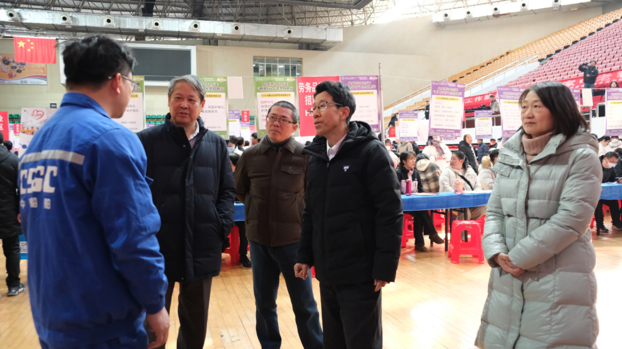 2月9日上午,安徽省2025年“春风行动”新春大型招聘活动在安庆市体育馆盛大开场。我校党委副书记、校长毕明生,党委副书记李克让率队参加。招生就业处,各二级学院相关负责同志、专业建设负责人、毕业班辅导员等参加活动。