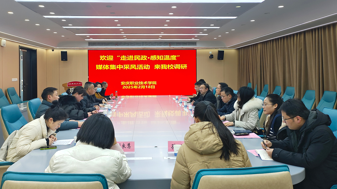 2月18日下午,《中国民政》《安徽日报》《中安在线》《中国社会报》等主流媒体到我校开展“走进民政·感知温度”媒体集中采风活动。安徽省民政厅办公室一级调研员肖文卫、二级主任科员张玉涵、安庆市民政局党组副书记王征兵、《中国民政》杂志社社长尹冬华一行来我校调研。校党委委员、统战部部长李五一接待了调研组一行,我校管理服务学院院长陈颖、继续教育学院院长姚咏等相关工作人员参加了调研活动。