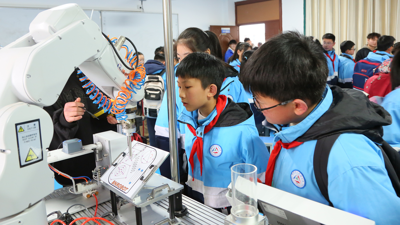 2月26日,安庆人民路两个校区共计近百名小学生走进我校,沉浸式体验新能源汽车课程和工业机器人课程。老师用生动形象的语言,为孩子们揭开了“人工智能”的“神秘面纱”。