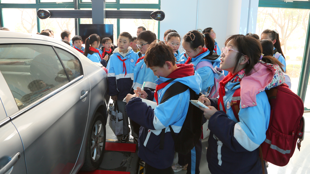 在新能源汽车实训室,我校汽车产教融合实践中心主任舒满征老师从车载传感系统如何感知周围环境,到人工智能算法如何进行决策,为孩子们抽丝剥茧,答疑解惑。孩子们听得津津有味,不时发出阵阵惊叹:“无人驾驶的汽车会自动避开危险路段,而且识别精确,不会疲劳驾驶,很安全!”