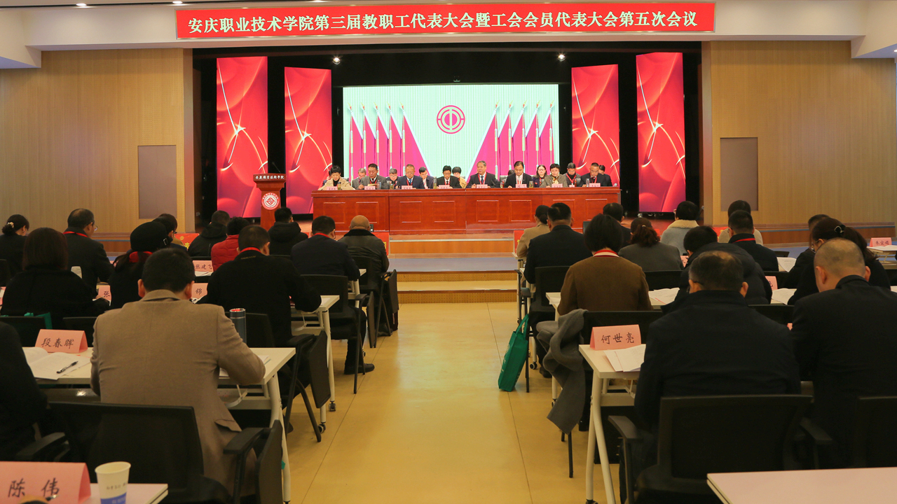 毕明生代表学校向大会作题为《干字当头 奋勇争先 共同谱写学校高质量发展新篇章》的工作报告。报告用详实的数据和充分的事实案例列举了自三届第四次“两代会”以来学校在综合改革和内涵建设上展现的新面貌,历数了学校在党建引领、“三全育人”、专业建设、产教融合、人才培养、校园文化、师资队伍、服务地方、依法治校九个方面取得的新成绩。