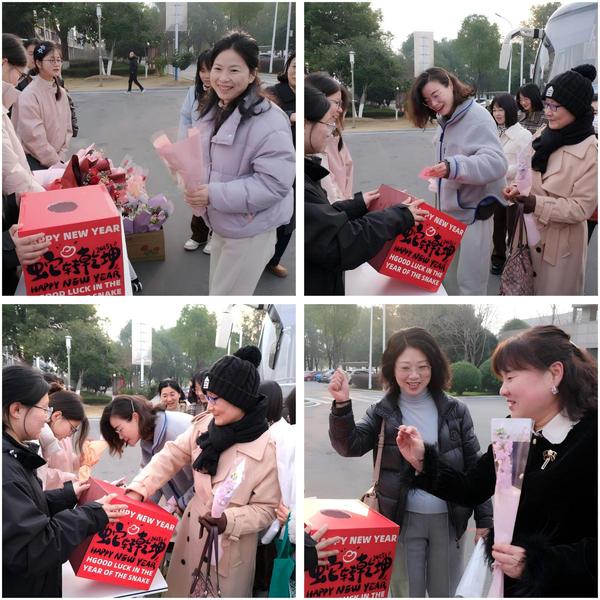 为增添节日惊喜感,活动特别设置“鲜花盲盒”抽奖环节。女职工们怀着期待抽取盲盒,开启后映入眼帘的精美花束令笑容绽放。一束束鲜花为节日增添浪漫色彩,传递对女性教职工的深切关爱。