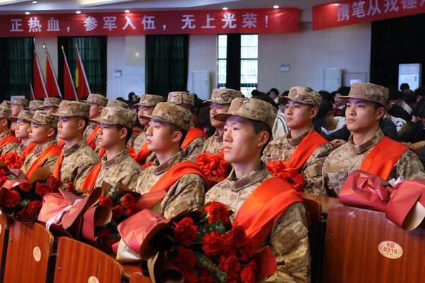 毕明生还对在场同学提出三点期望,一是对标楷模,眼里有榜样,以入伍学长为标杆,见贤思齐、躬身践行;二是胸怀家国,心中有志向,将“小我”融入“大我”,将青春理想深植于民族复兴的沃土;三是不负使命,肩上有担当,以“只争朝夕”的紧迫感学好科学知识,练就报国本领,让青春在党和人民最需要的地方绽放光彩。