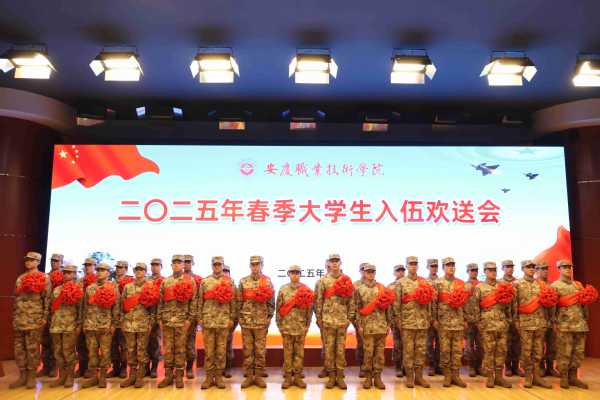 “一人入伍全家光荣,一生参军全校相送。”3月14日下午,2025年春季大学生入伍欢送会在校图文信息中心一楼报告厅举行。校党委副书记、校长毕明生出席会议并讲话。迎江区人武部负责人,校党委委员、统战部部长李五一,全国模范退役军人、皖北烈士陵园许玉亭红色宣讲工作室负责人许玉亭出席。校六个二级学院主要负责人、征兵工作负责人、征兵专干、毕业班辅导员、校征兵工作站全体人员、入伍毕业生及家长代表、在校生代表近500人参加。