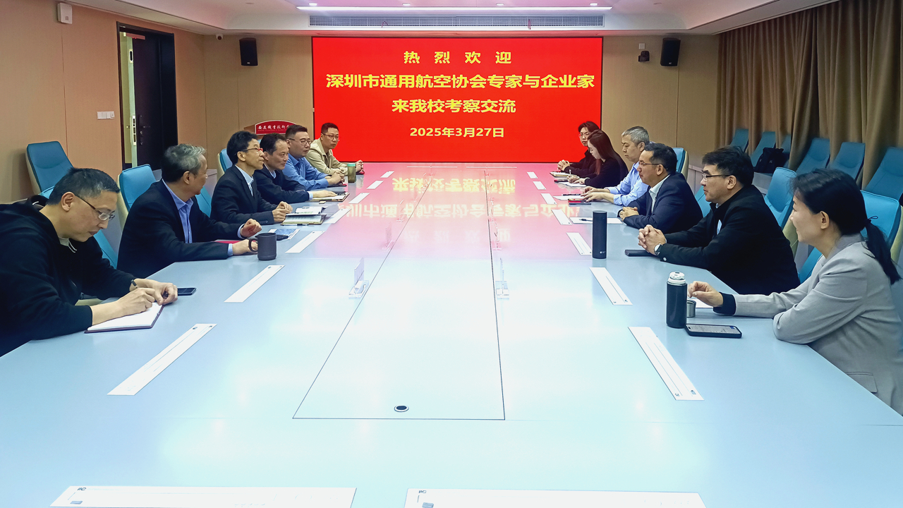 3月27日上午,三航工业技术研究院院长、深圳市通用航空协会创始会长杨金铭率深圳市企业家代表来我校考察交流。校党委副书记、校长毕明生,校党委副书记李克让热情接待来宾并座谈交流。市民政局党组书记江学文,副局长杨善龙一同来访。