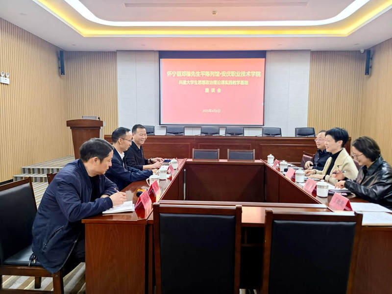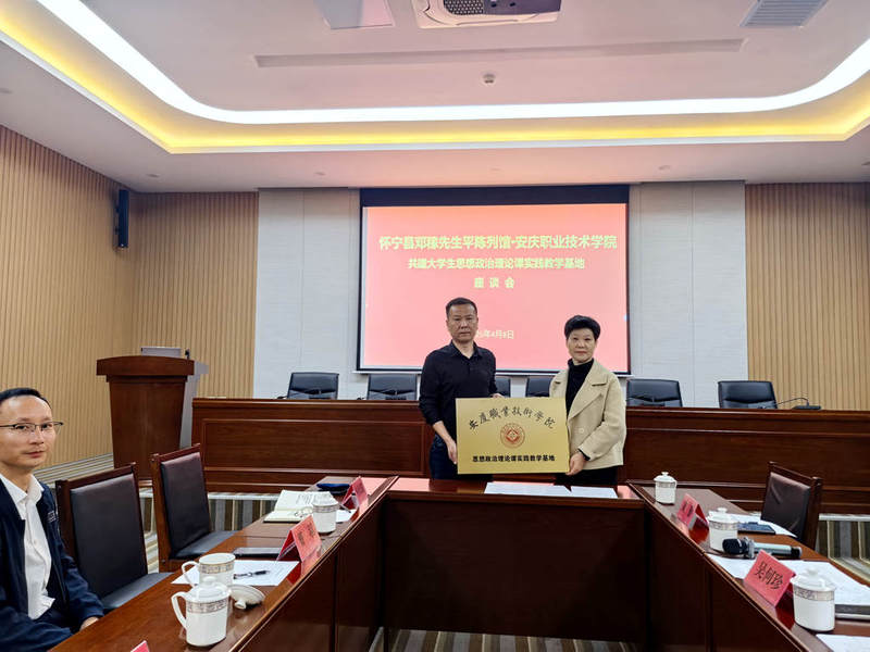 在挂牌仪式前的座谈会上,怀宁县文化旅游体育局党组成员、副局长曹羽对吴何珍一行表示热烈的欢迎,何张俊对场馆主要情况作了简要介绍。吴何珍表示,此次合作是推动“大思政课”建设走深走实的重要举措,强调要立足地方红色资源优势,通过“红色资源+思政课程”模式,开发“科学家精神专题教学案例库”,将邓稼先爱国奉献精神融入课堂教学。何张俊表示,陈列馆将发挥阵地优势,为师生提供实践调研、情景教学等支持,共同探索新时代思政育人路径。