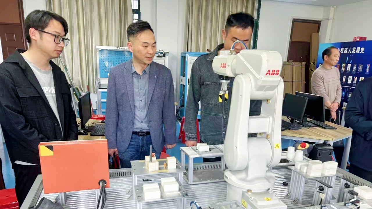 会后,来访团实地考察了实训教学场景,先后参观了该院汽车产教融合实践中心、工业机器人技术实训基地、机电一体化综合实训室。在工业机器人技术实训室,代表团观摩了学生操作ABB机器人完成零部件智能装配的全过程,对我院“将真实生产项目转化为实训课题”的做法表示肯定。(文、图:潘华书 审稿:吴福贵)