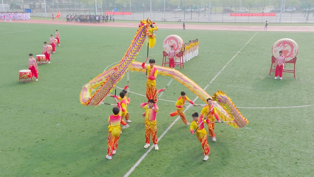 开幕式前,一场气势磅礴的“鼓韵生风·舞炫飞龙”表演点燃全场。鼓点铿锵有力,街舞动感十足,校龙狮队以矫健的身姿演绎腾跃翻飞的舞龙舞狮,将传统与现代元素巧妙融合,展现了学子们昂扬向上的精神风貌,赢得现场阵阵喝彩。