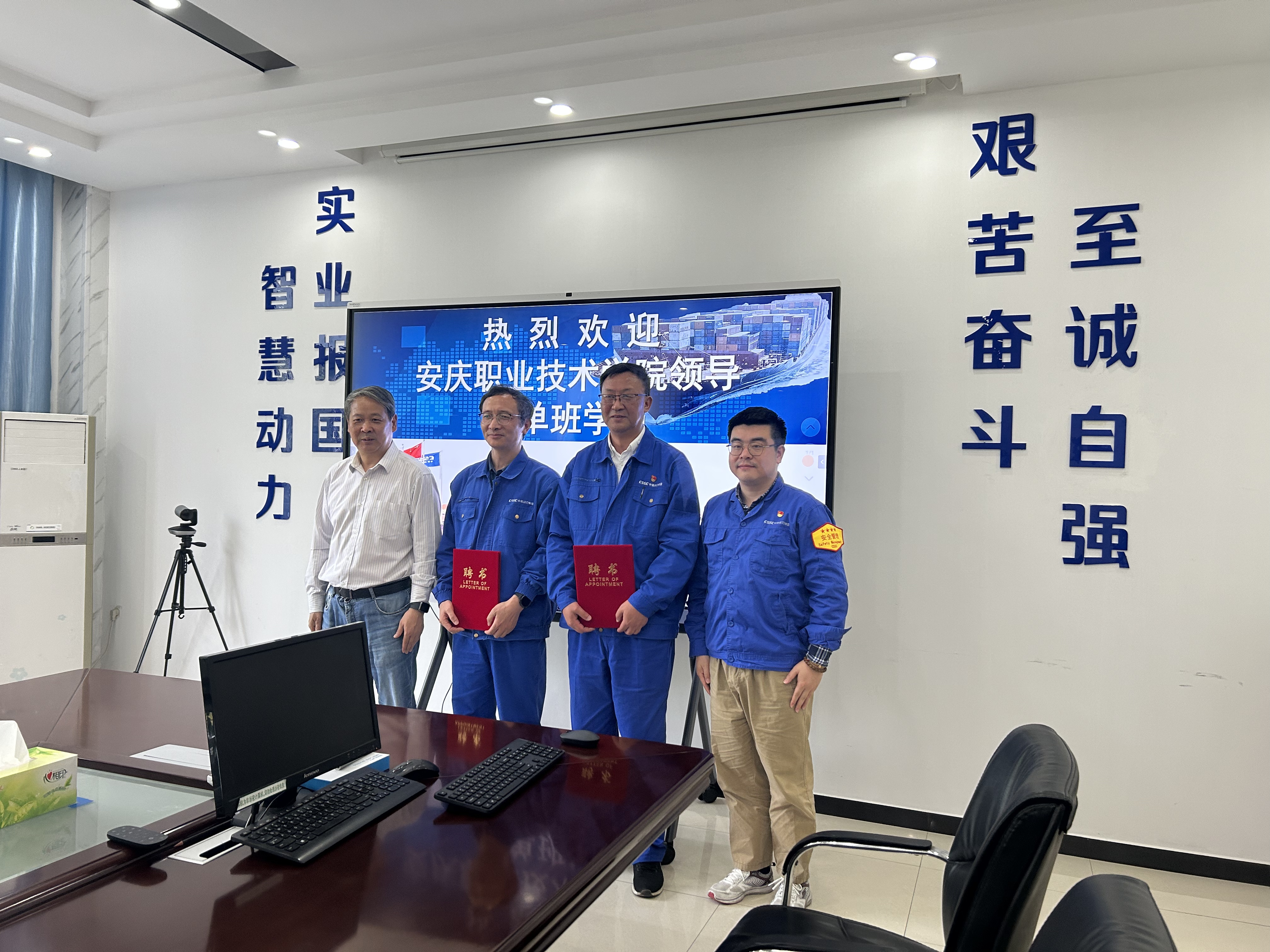 4月29日,我校与安庆中船动力配套有限公司在该公司厂区举办订单班学员专场工学交流活动。校党委副书记李克让出席交流会,校相关部门负责人和订单班学员参加。