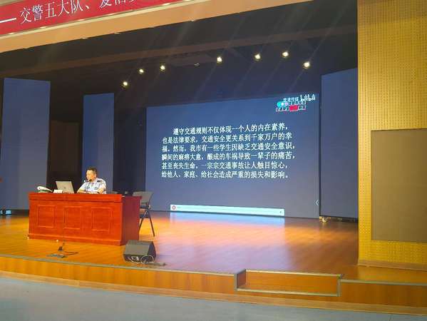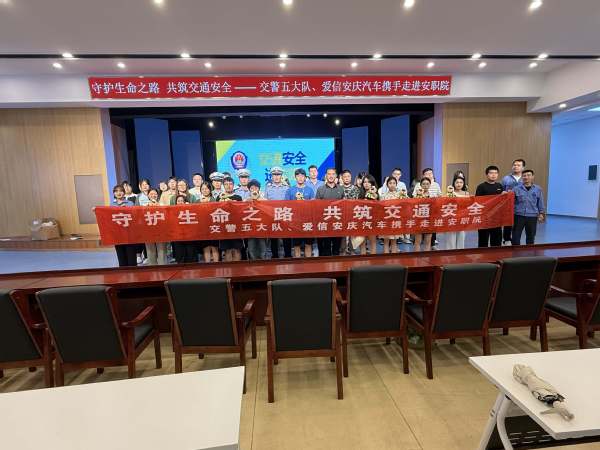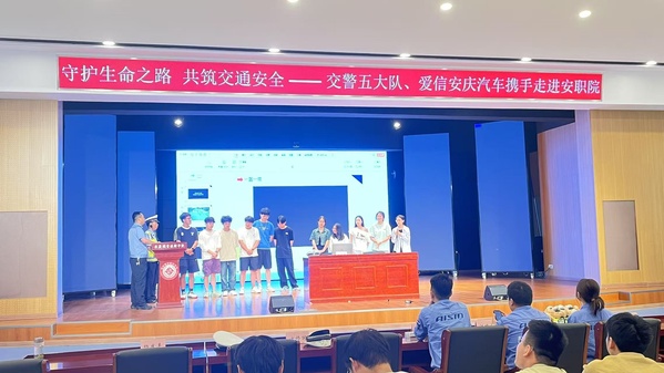 为切实增强学生的交通安全意识,提升自我保护能力,营造安全有序的校园出行环境,5月21日,我校携手安庆市交警支队五大队二中队,实训一楼报告厅共同举办“守护生命之路、共筑交通安全”交通安全知识教育活动。活动特邀市交警五大队二中队中队长任章伟作主题报告。市交警支队五大队二中队和爱信(安庆)汽车零部件有限公司代表参加活动。我校保卫处负责人叶军舰主持,校现代商务学院近300名师生参与。