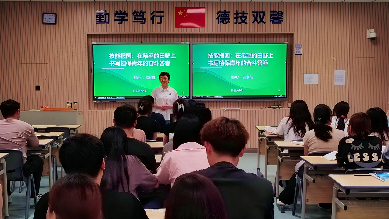 5月22日,校组织部部长高润霞以《技能报国:在希望的田野上书写植保青年的奋斗答卷》为题,为24级植物保护专业学生授课。