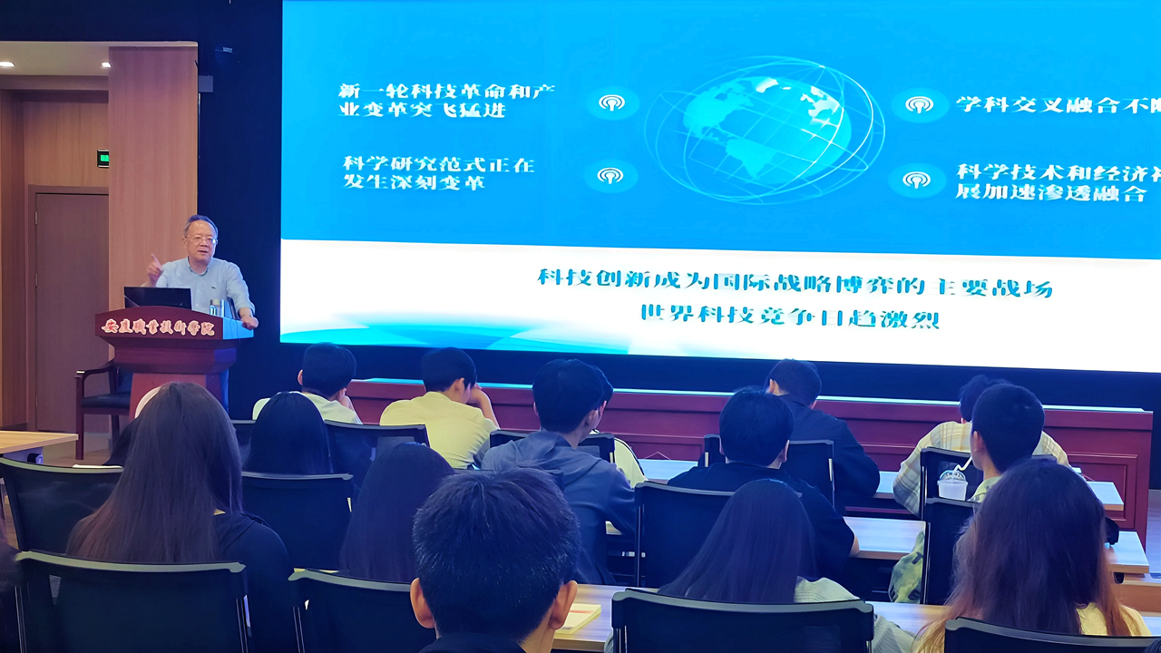 谭维奇从全球视角出发,深入阐释了科技自立自强的战略意义、以及当前我国面临的挑战与机遇。全面展现了在科技竞争日益激烈的当下,实现高水平科技自立自强是我国在国际竞争中赢得主动、保障国家安全和推动经济高质量发展的必然选择。他鼓励同学们要赓续奋斗传统,投身科技创新,为国家发展贡献力量。