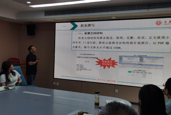 2024年省赛一等奖团队负责人舒满征副教授受邀作经验分享。他围绕教案撰写、实施报告编制、教学视频录制等核心环节,倾囊相授宝贵实战经验,为参赛团队提供了极具价值的参考。(文、图:杨晓惠 审稿:曹  青)