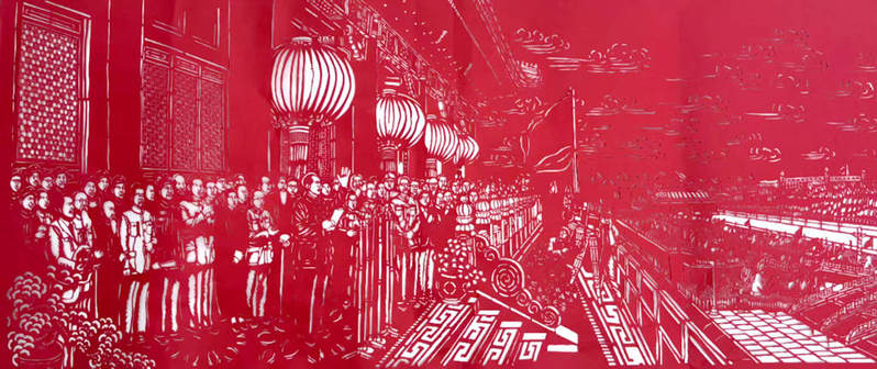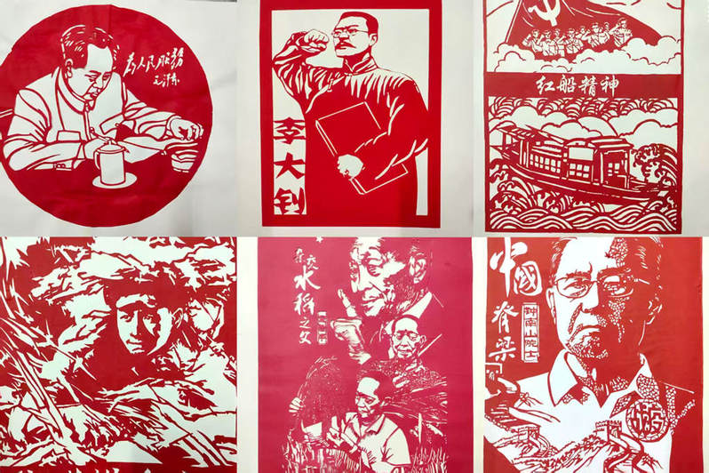 红纸镂刻英雄谱,一幅幅生动的剪纸作品跃然眼前。作品中,有专注书写的毛泽东形象,象征着对知识和理想的执着追求;有战斗中坚毅的英雄,红旗飘扬,彰显革命精神;更有庄严的开国大典场景,天安门城楼上伟人肃立,广场上红旗招展,人山人海,欢呼声震耳欲聋,历史在这一刻被永远铭记。这些作品以金刀镌刻历史,用红纸传承精神,不仅展示了剪纸艺术的独特魅力,更深刻铭记了烽火年代的英雄事迹。