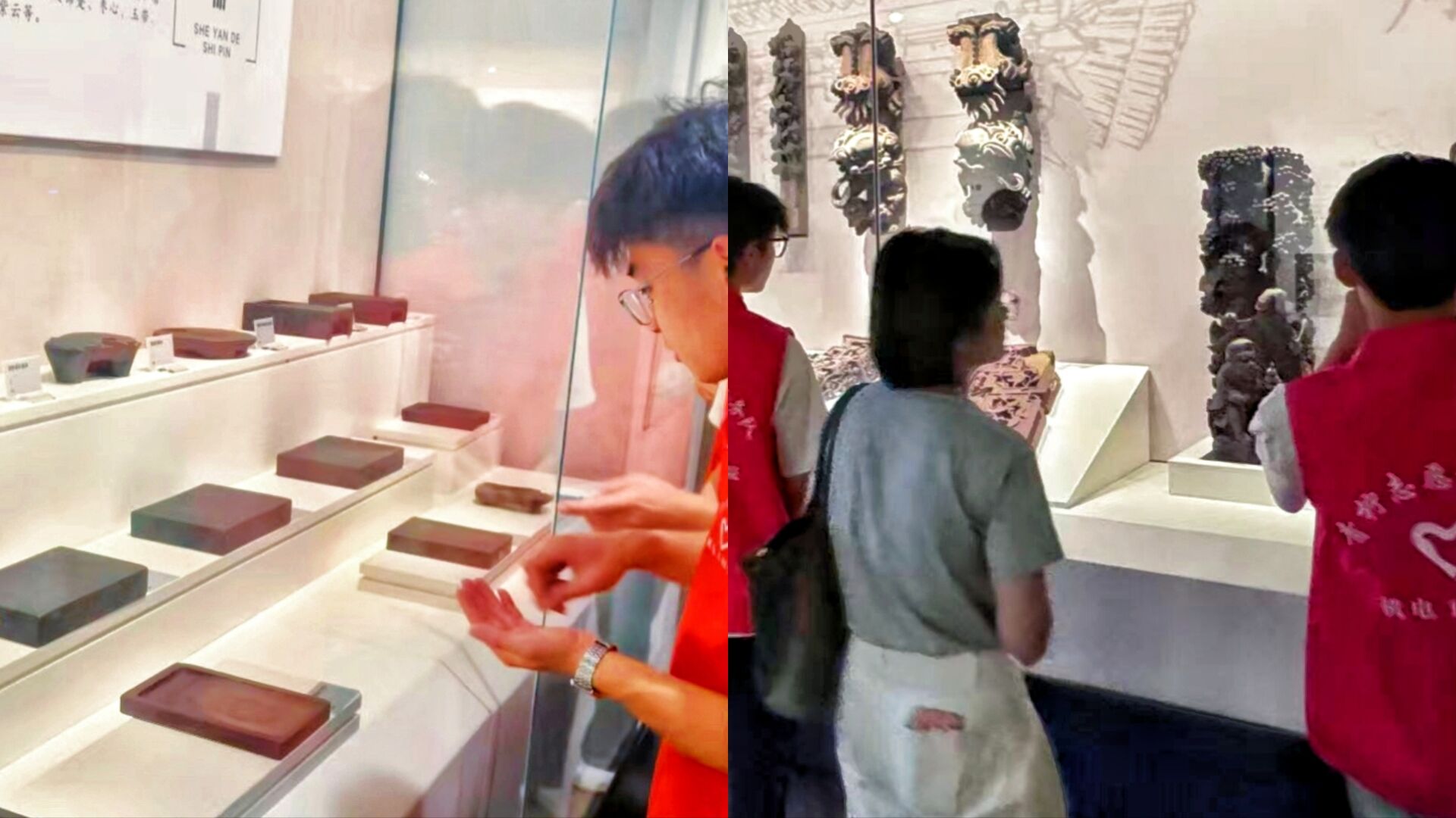 7月20日,两项目成员首先参观了徽州历史博物馆,从古朴的徽州古建筑模型到精美的文房四宝,从历代名人字画到民俗文物,成员们认真聆听讲解,不时驻足记录。此次参观旨在系统增进对徽州文化的理解,梳理剪纸、歙砚等传统技艺的历史渊源,为后续深入探访非遗传承打下坚实的文化认知基础,使实践活动更具深度与温度。