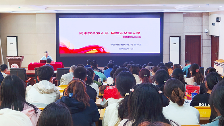 为增强师生网络安全意识,提升网络安全防护能力,10月15日下午,信息技术学院邀请全国劳动模范、中国电信安庆分公司战新产品营销中心副总经理、高级工程师彭一言在2号教学楼216信仰报告厅作题为《网络安全为人民 网络安全靠人民》的专题讲座。该院院长疏国会出席讲座并讲话,全体教职工及各班级学生代表共计150余人到场聆听。