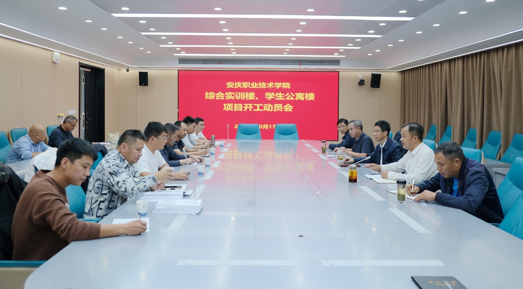 10月17日上午,我校在综合楼425会议室召开综合实训楼、学生公寓楼项目开工动员会。校党委副书记、校长毕明生出席会议并讲话,校党委委员、副校长程飞主持会议。基建处、后勤处主要负责人,施工单位及监理单位代表参加。
