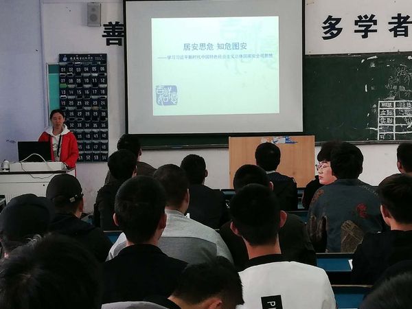 一是利用“网络课堂”和“空中课堂”组织各班级参加教育部“千万学生同上一堂国家安全教育课”活动。二是利用实体课堂,开展专题讲座。思政部组织老师制作《习近平新时代中国特色社会主义总体国家安全观思想》课件,集中对大学生进行系统的总体国家安全观教育。三是利用学院电子屏幕、横幅、宣传栏等多种形式,积极营造浓厚的教育氛围,集中开展国家安全主题教育活动。