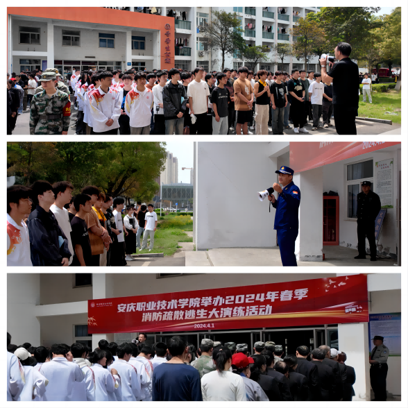 为进一步加强校园消防安全宣传和管理工作,提升内部群防群治力量的建设,切实提高全校师生员工的消防安全意识和自防自救能力,提高突发事件应急处置能力。4月1日,我校在6号学生公寓楼举行2024年春季消防疏散逃生大演练消防安全培训活动。安庆市消防救援支队、迎江大队秦潭湖消防救援站、全校师生员工近600人参与了本次活动。