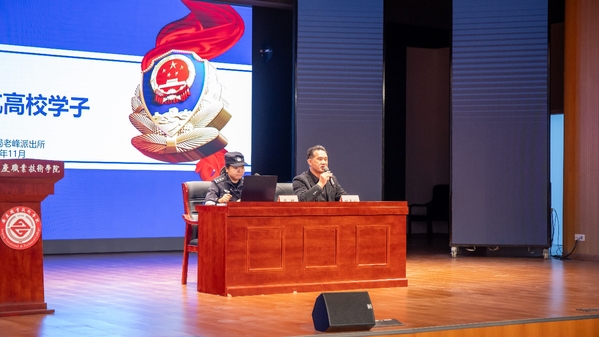 为提高广大师生的反诈意识和防骗能力,切实保护师生财产安全,11月20日下午,在一号实训楼报告厅由保卫处联合辖区派出所组织开展主题为“提高反诈意识,护航高校学子”的反诈宣传教育活动,活动由保卫处负责人叶军舰主持。来自各二级学院的班级干部学生代表200多人现场聆听讲座。本次防诈宣传讲座在线直播,全程录播,要求各班学生通过晚自习、班会课统一组织安排收看,在校生覆盖面达百分之百。