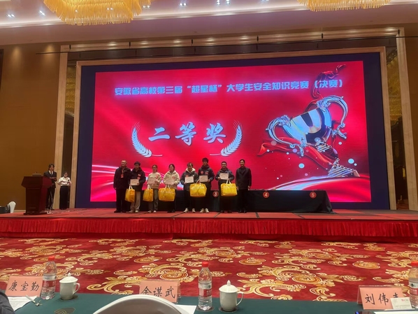 据悉,安徽省“超星杯”大学生安全知识竞赛以普及安全常识、增强安全意识、提升安全技能、培育安全文化为目标,围绕大学生防范电信诈骗、心理健康、消防安全、交通安全等主题,着力提升大学生安全素养和应急处置能力,已成功举办两届。此次我校首次参加比赛并取得优秀成绩,不仅是对参赛选手个人努力和团队精神的肯定,对我校长期以来重视安全教育工作的充分展示和认可,更是对未来安全教育工作的一种鞭策和激励。(文图:杨庆丰   审核:叶军舰)