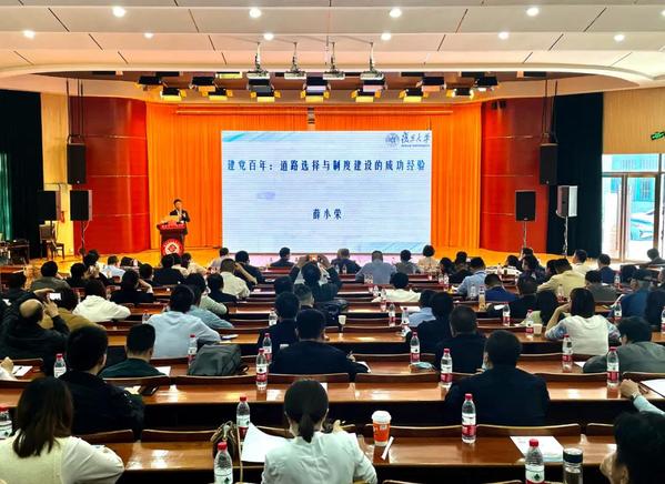 薛小荣以《建党百年:道路选择与制度建设的成功经验》为题,结合大量历史事件,用精辟透彻、生动通俗易懂的语言,从“站起来”、“富起来”、“强起来”三个时代制度的选择,生动阐述中国共产党从国情出发,三次历史性的制度调整与功能优化,既简要概括了中国近代以来飞跃的历史进程,又深刻揭示了中国特色社会主义不断开辟发展新境界的历史意义。报告深入浅出,内容丰富,进一步增强了参会人员对中国共产党人初心和使命的情感认同、理性认同、实践认同,对党的奋斗历程和制度建设有了更加清晰的认识,在重温党的历史过程中得到了新的启迪和教育。(文:胡强圣 审稿:姚咏)