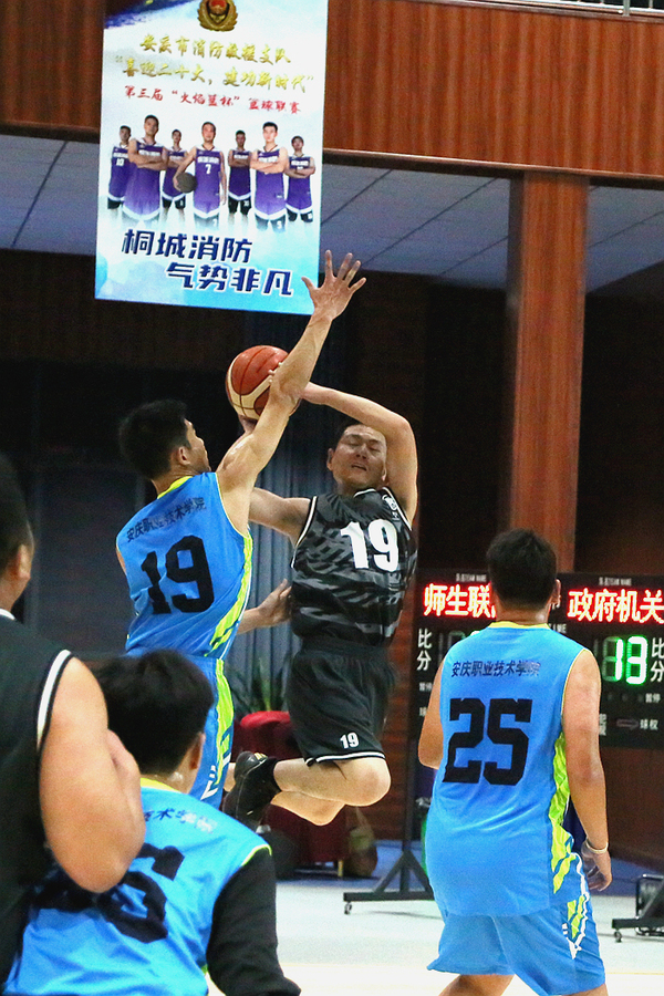 第三节,易边再战。抢断、防守、进攻个个都雄姿英发,场面扣人心弦,紧张激烈。师生联队凭借体力优势,接连得分,第三节结束比分28:23,师生联队领先。第四节,机关队改变战术,加强防守和内线突破,机关队打出了一波12比1的小高潮。换人后,师生联队虽在进攻方面有所加强,第四节结束前师生联队13号球员张子威压哨中投命中,但机关队凭借丰富的经验稳住比分,精彩的对决不时引发在场观众的掌声。比分50:45机关队领先。第五节,双方体力开始下降,失误增多,互有攻守,难分伯仲,比分66:63机关队保持领先。第六节,师生队年轻队员较多的优势显现出来了。倒计时58秒,机关队24号唐厚明再次三分命中。两个多小时的激烈对抗,双方队员都发挥出了最好的状态,做到“每球必争,拼尽全力,实施战术”,比分僵持不下。最终,安庆职院师生联队以84:77的比分赢得了本次篮球友谊赛。