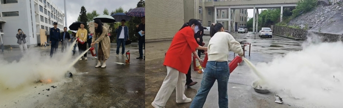 最后,参训人员按照“一提、二拔、三握、四压”的方法,使用手提式干粉灭火器对现场小型模拟火点进行实际灭火操作,同时对消火栓软管接口的连接操作进行了训练。