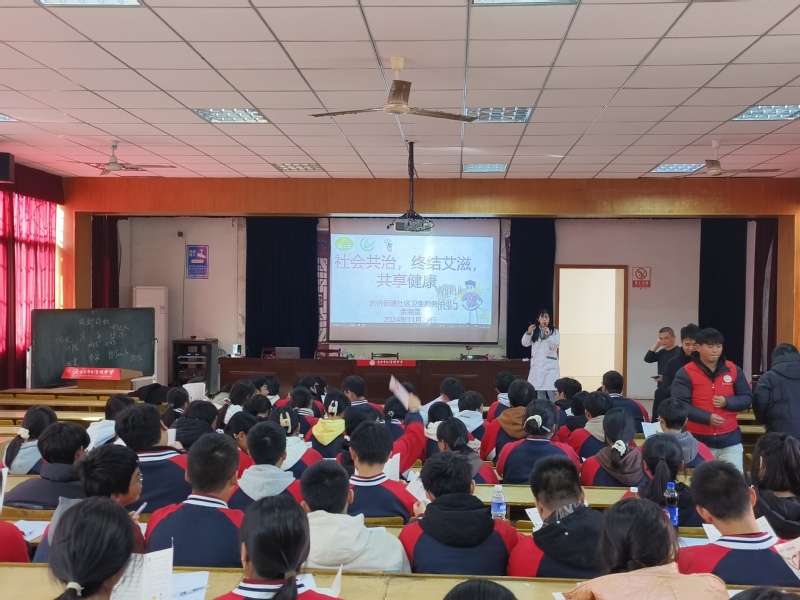 12月1日是第37个“世界艾滋病日”,为广泛普及艾滋病防治知识,11月29日,我校后勤保障处联合市宜秀区大桥街道社区卫生服务中心,赴白泽湖中学开展艾滋病防治宣传活动。