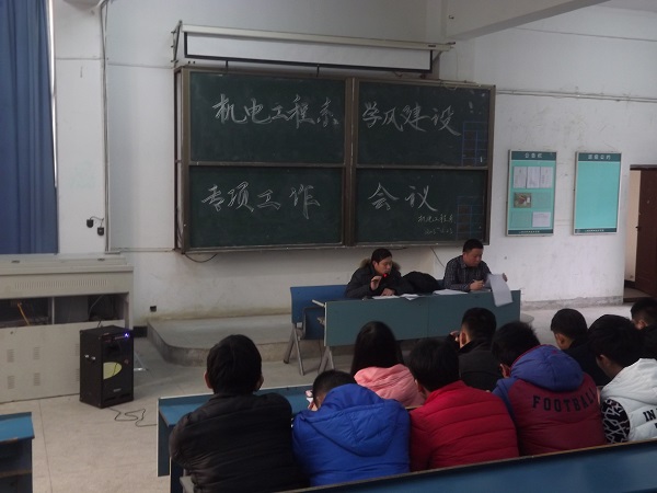 12月23日下午,机电工程系在一栋教学楼216教室举行系学风建设专题会议,系团总支负责人、专职辅导员、各班班长等相关人员参加了此次会议。