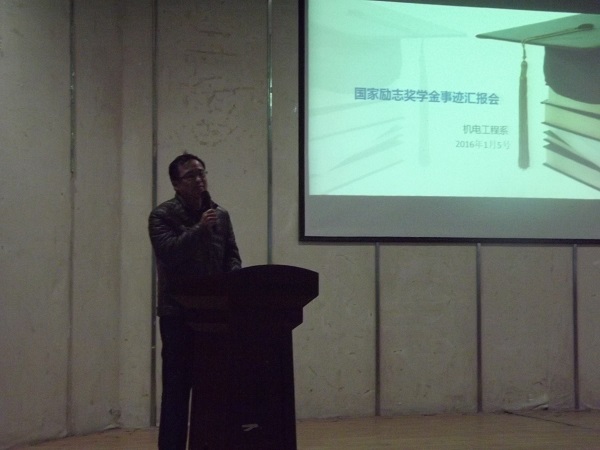 为进一步贯彻落实我校“学风建设”,营造良好的学习氛围,加强新生对国家政策的认识和了解。1月5日下午,机电工程系2014至2015年度国家励志奖学金获奖学生优秀事迹系列报告会在图文信息楼一楼报告厅隆重举行,系分管教学工作负责同志、系分管学生工作负责同志、系团总支书记、各班辅导员、获奖学生及15级机电系全体学生出席了本次报告会。