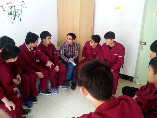 为了加强校企合作,了解学生在企业顶岗实习的情况,确保学生在企业实习期间的各项工作有序进行,自3月7日首批140名新能源实习生抵达江淮以来,机电工程系安排李陶胜、田海波、王兆明三位实习驻点老师,每周轮流前往实习企业,仔细了解他们的生活状况和实习的感受。