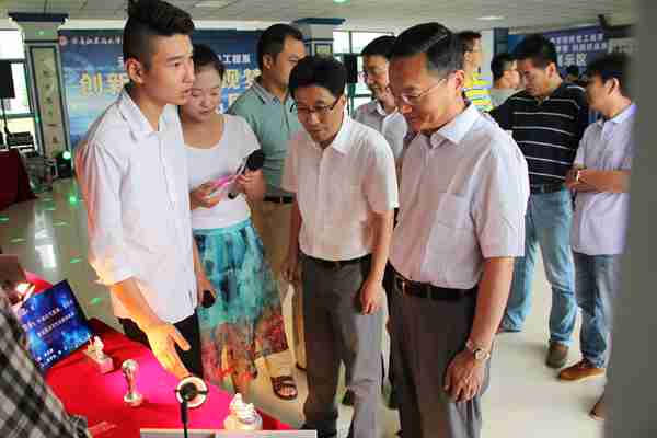 6月15日,我院机电工程系在一栋教学楼大厅举办了以“创新驱动,实现梦想”为主题的首届科技作品展。院党委书记王进,院党委委员、副院长毕明生,院党委委员、副院长谭维奇,办公室、组织人事处、学生处、团委、教务处及机电系相关领导应邀出席本次作品展并对作品进行点评。