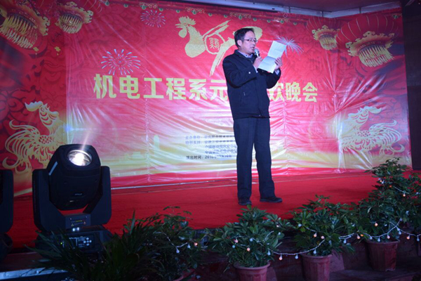晚会伊始,机电系的师生们通过视频为大家送上了新年祝福。随后,系副主任江建刚为此次晚会致辞,他先回顾了2016年机电工程系系取得的成就,表示我系在新的一年里要再上一层楼的决心,并对今天文艺汇演付出辛勤汗水的老师、同学们表示感谢,最后他预祝本次晚会圆满成功。