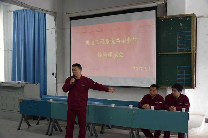 此次会议分为教学实习动员会、企业人员实习就业宣讲、优秀毕业学生经验之谈、现场面试等四个环节。动员会上,系分管教学工作负责同志就实习目的、要求以及实习的注意事项对学生进行了教育和指导,详细说明了实习安排,着重强调了教学实习的重要性,并希望同学们利用难得的实习机会,严格按照实习的有关要求,圆满完成实习任务。