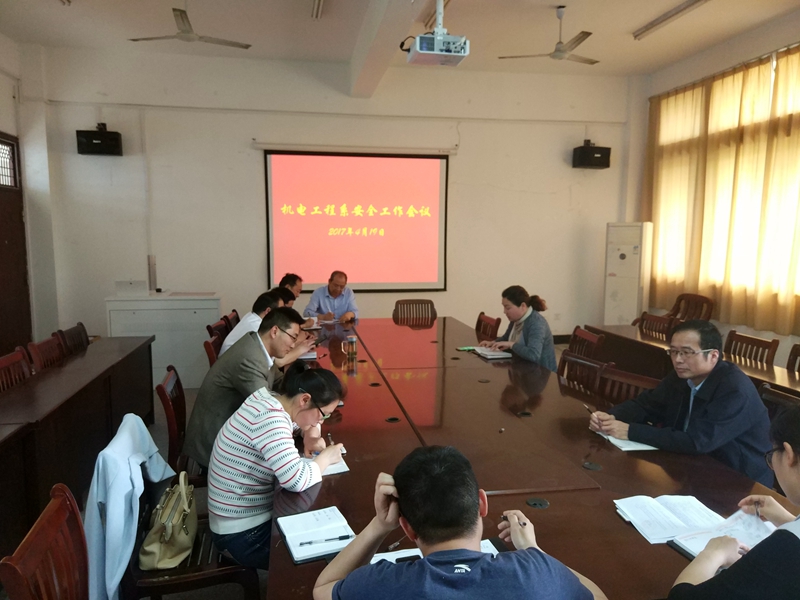 为加强系部的安全管理工作,预防安全责任事故的发生,4月19日下午,机电工程系在一栋教学楼208会议室召开系部安全工作会议,会议由系分管学生工作负责同志主持,系分管教学工作负责同志及全体专兼职辅导员参加了此次会议。