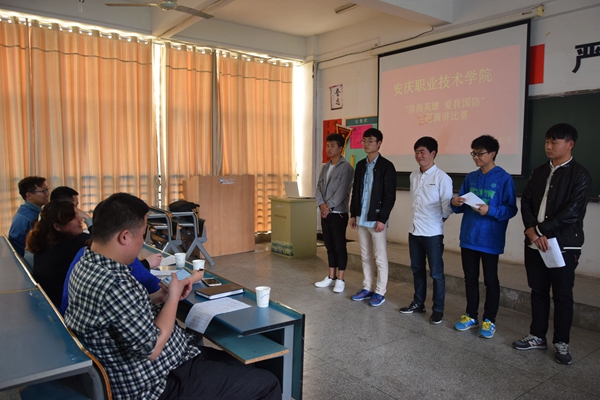 为了纪念建军90周年,增强大学生爱军尚武、立志报国的爱国情怀,配合年度大学生征兵工作的开展。机电工程系于4月26日下午在214教室举行以“崇尚英雄、爱我国防”为主题的演讲比赛。本次比赛由系分管学生工作负责同志、团总支副书记以及专职辅导员组成评委团进行打分。