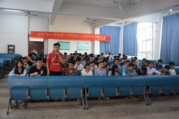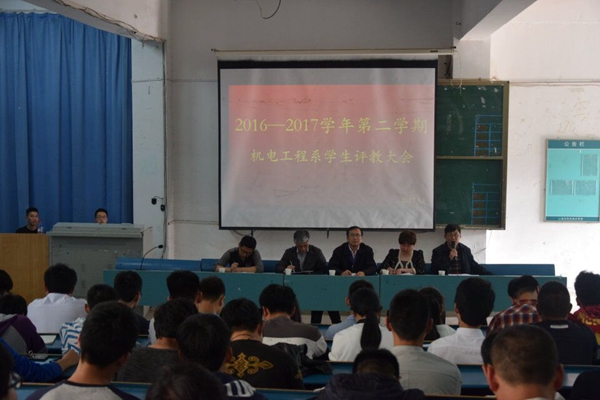 为全面提高我系教学质量,让学生做学习的主人,53日,机电工程系在一栋教学楼216教室召开了“2016-2017学年第二学期学生评教大会,参加此次会议的有院教学督导、系分管教学工作负责同志系分管学生工作负责同志,以及15、16级各班学生代表。