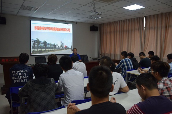 随后,师生共同观看了公司宣传短片,并聆听了该公司总经理对公司的发展前景作出简要介绍,使师生们更深入的了解了该公司的发展历程、发展空间以及设备的先进程度。