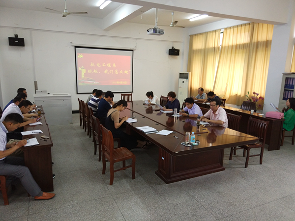 为深入推进“两学一做”学习教育常态化制度化工作有效开展,提高全体党员的政治觉悟和党性意识,6月26日上午,机电工程系召开“重规矩,我们怎么做”专题学习研讨会,系负责人刘磊出席会议并讲话,系分管教学工作负责同志、系分管学生工作负责同志及系部全体党员参加学习讨论。