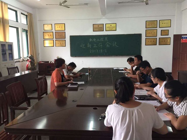 9月1日,机电工程系召开了迎新工作会议,会议由系学生工作负责人主持,系教学工作负责人以及各专职辅导员参加了此次会议。