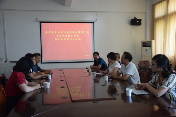 会上,合肥京东方显示源科技有限公司人事部门负责人介绍了该公司主要情况,以及日常生产、管理、营销等方面内容,并且就“校企合作”、“订单人才培养”、“冠名班”等方面的问题提出了公司的主张和建议。